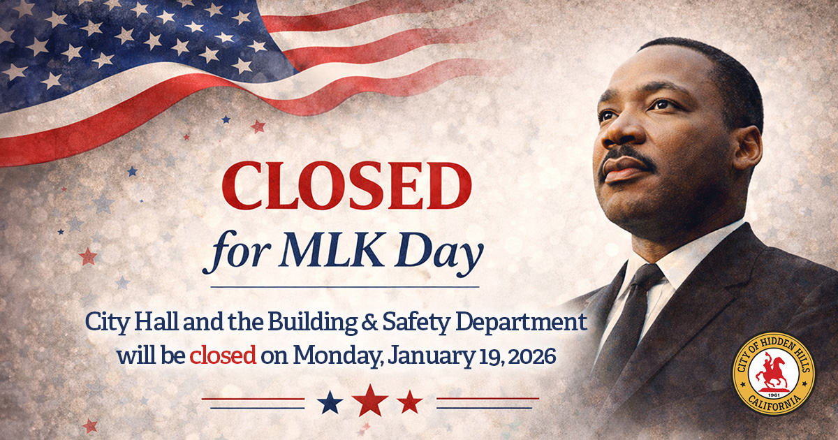 In observance of Martin Luther King Jr. Day, City Hall and the Building and Safety Department will be closed on Monday, January 19. Regular business hours will resume on the following business day.